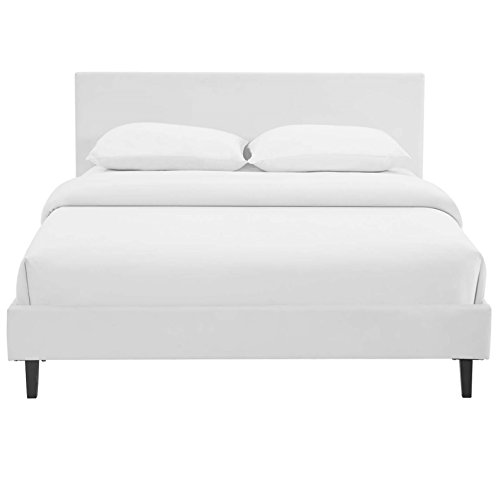 Modway Anya Upholstered White Faux Leather Full Platform Bed with Wood Slat Support