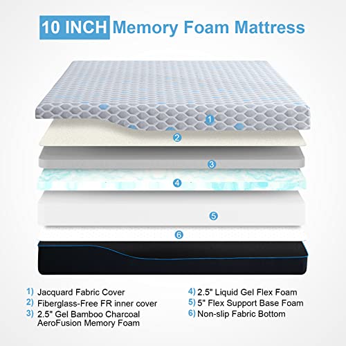 【Support&Pressure Relief】: This memory foam mattress is an all-foam layered design, the comfort layer features Gel Bamboo Charcoal Infused memory foam that conforms to the body’s natural curves to relieve pressure, while the Flex support base foam provides long-lasting durability and support. Helps reduce stress on the shoulders, hips, waist, legs and feet, ideal for lying on your back, side and stomach.