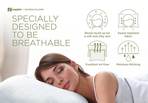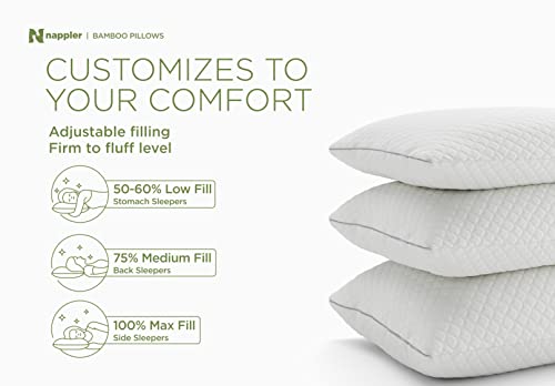 Nappler Bamboo Pillows Queen Size Premium Set of 2 – Supportive Breathable Adjustable Shredded Memory Foam – Medium to Firm Pillows for Back, Stomach & Side Sleepers