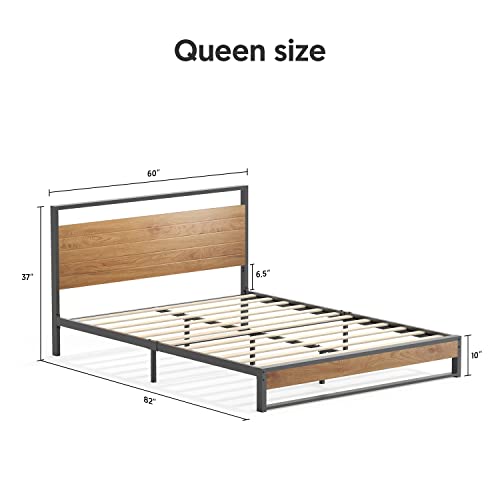 Nazhura Metal Queen Size Platform Bed Frame with Wood Headboard/Footboard (Queen (U.S. Standard))