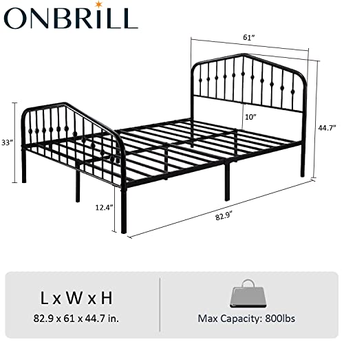 ONBRILL Queen Size Metal Bed Frame with Headboard and Footboard,Steel Slat Support, No Box Spring Needed