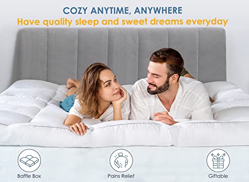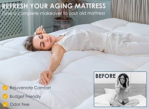 QUEEN ROSE Mattress Topper Queen, Extra Thick Cooling Mattress Pad Cover, Plush Soft Pillow Top Mattress Topper with Overfilled Snow Down Alternative, Soften Firm Bed, Back Pain Relief, White