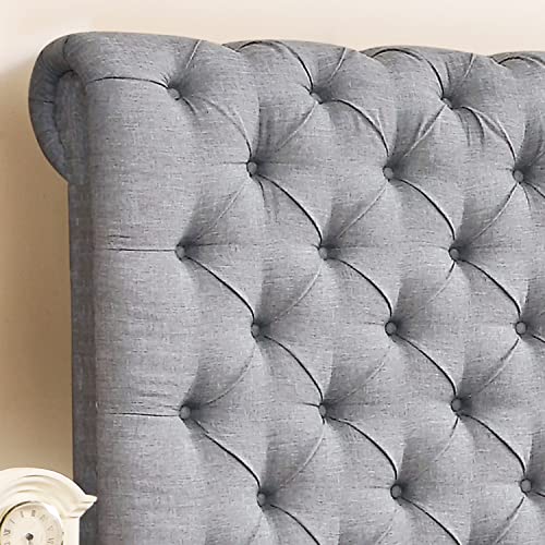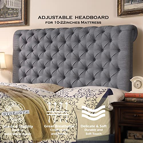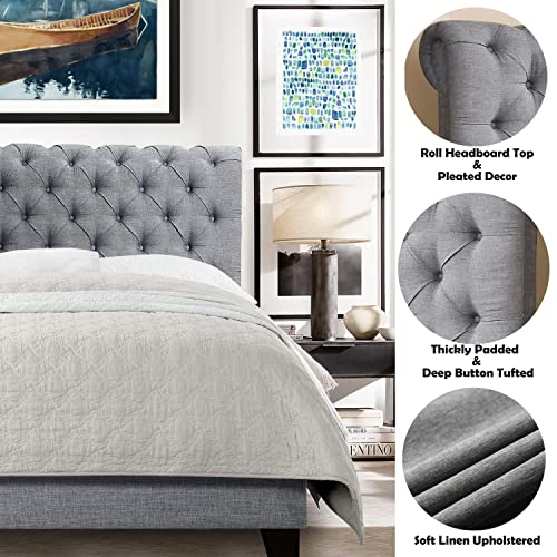 Rosevera Gideon Platform Bed Frame/Fabric Upholstered Bed Frame with Adjustable Headboard/Chesterfield-Styled/Wood Slat Support/Easy Assembly,Full,Gray