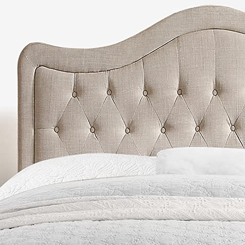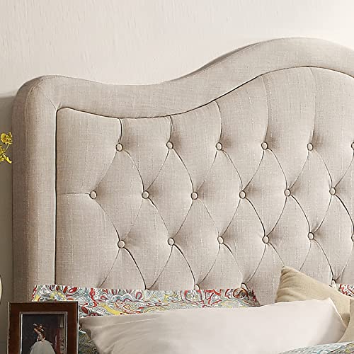 Rosevera Grayson Adjustable Headboard Bed with Fine Polyester and Button Tufting for Bedroom, King, Sand