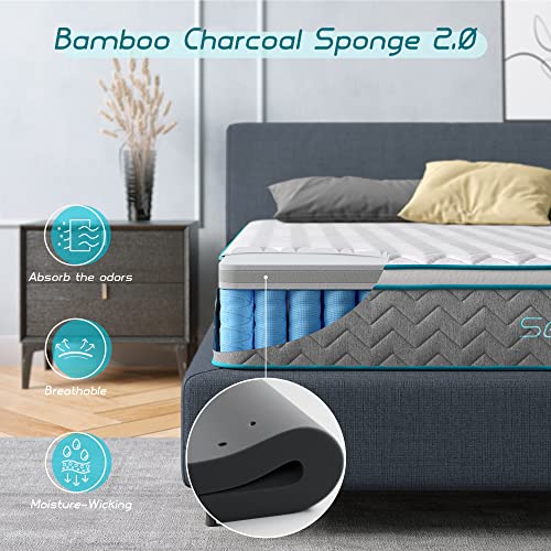 Serweet 8 Inch Bamboo Charcoal Memory Foam Hybrid Queen Mattress – 5-Zone Pocket Innersprings for Motion Isolation -Heavier Coils for Durable Support -Medium Firm -Made in Century-Old Factory