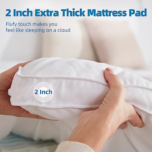 Premium Dual Layer Gel Memory Foam Mattress Topper: the bottom layer is a 2″ gel memory foam topper and the other layer is a 2″ microfiber mattress cover filled with soft down replacement fibers. The microfiber top layer has a 360° deep pocket design, so no matter how you move on the bed, this mattress topper stays neat all night. Perfect for restless sleepers.