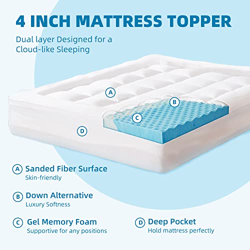 SINWEEK Dual Layer 4 Inch Memory Foam Mattress Topper, Full Size, 2 Inch Gel Memory Foam Plus 2 Inch Extra Thick Pillowtop Cover, Pressure Relieve Soft Mattress Pad