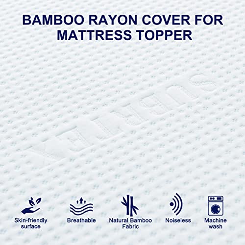 Fitted Bamboo Cover: Our mattress topper cover is removable and washable for easy cleaning. The bamboo cover is equipped with anti-slip mesh backing to prevent sliding, adjustable straps to fasten the mattress topper better while premium metal zipper for easy to remove.