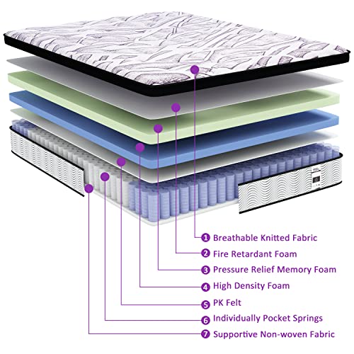 Teoanns Full Mattress, 12 Inch Memory Foam Mattress in a Box, Individually Wrapped Coils Pocket Springs Hybrid Mattress, Medium Firm for Supportive and Pressure Relief, 100-Night Trial…
