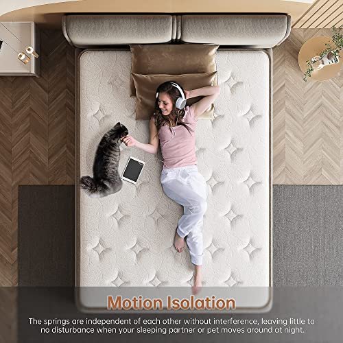🟤 【Motion Isolation & Edge Support】- The queen mattress features an individual pocket coils spring system that does well in motion insolation. When people or pets sleeping next to you move, you can still enjoy an undisturbed sleep. Reinforced edge support makes sure that sleepers will not slip off. Besides, it has a longer average lifespan than other traditional innerspring mattresses.