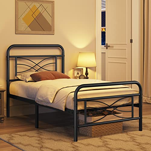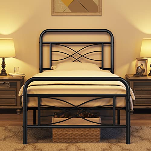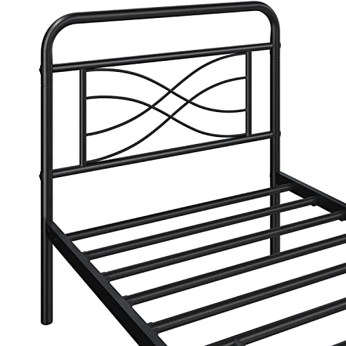 Topeakmart Twin Size Vintage Metal Bed Frame with Criss-Cross Design Headboard/Mattress Foundation/No Box Spring Needed/Under Bed Storage/Strong Slat Support Black