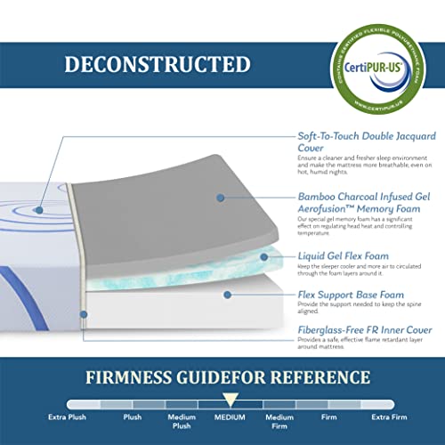 Bamboo Charcoal Infused Memory Foam Layer: Combined Bamboo Charcoal AeroFusion Memory Foam, Gel Flex Comfort Foam and Flex Support Base Foam, this mattress will provide you a pressure-relieving contour support and help keep cool and deep sleep.
