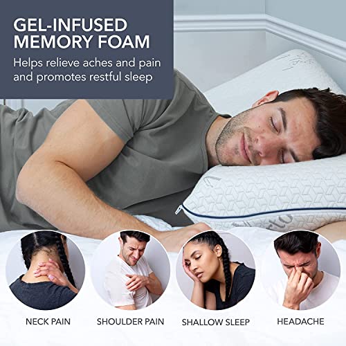Vaverto Gel Memory Foam Pillow -Standard Size – Ventilated, Premium Bed Pillows with Washable and Bamboo Pillow Cover, Cooling, Orthopedic Sleeping, Side and Back Sleepers – Dorm Room Essentials