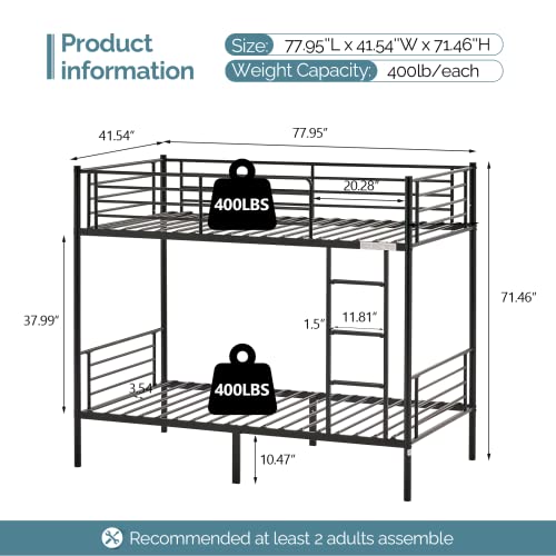 【Durable Construction】this twin bunk beds for adults with heavy-duty metal slat system supports up to 440 lbs per bunk for long-lasting stability.
