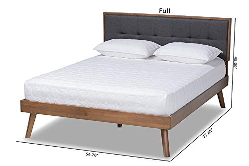 Baxton Studio Alke Mid-Century Modern Dark Grey Fabric Upholstered Walnut Brown Finished Wood King Size Platform Bed