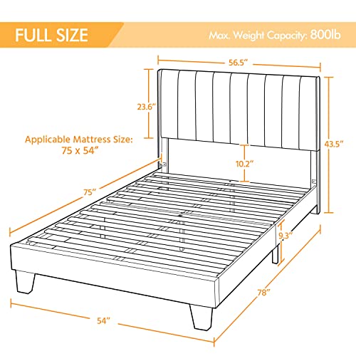 ✔【Sturdy Wood-Metal Construction】Interior metal framework, 12 pieces of durable wood slats, and dense foam-padding border increase comfort and durability of this full upholstered bed with wing design. With a maximum weight capacity of 705 lbs.