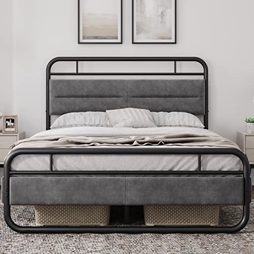 Yaheetech Queen Size Bed Frame, Heavy Duty Metal Platform Bed with Curved Upholstered Headboard, 8.7 Inch Under-Bed Storage/Steel Slat Support/Noise Free/No Box Spring Needed/Easy Assembly/Dark Grey