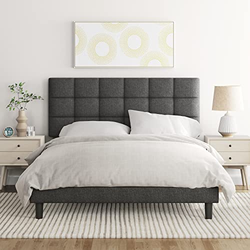 Yaheetech Upholstered Bed Frame, Platform Bed Frame with Adjustable Headboard, Mattress Foundation, Strong Wooden Slats Support, No Box Spring Needed, Dark Grey, Full