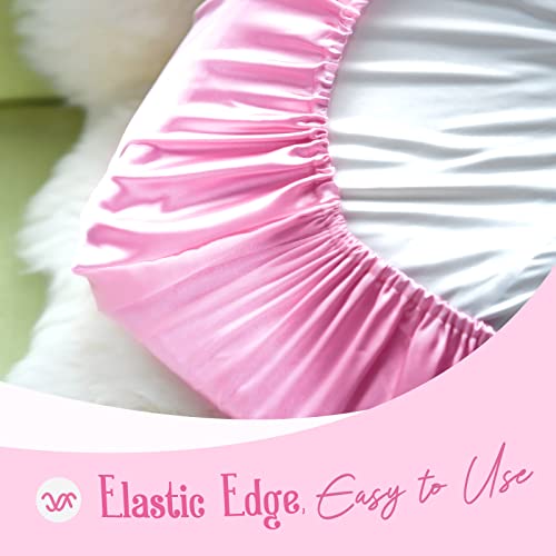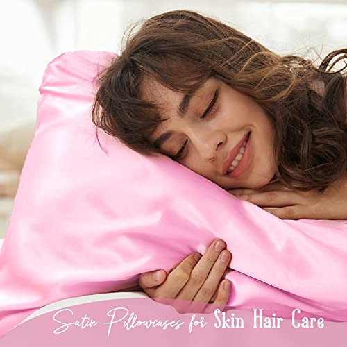 Yanideer Satin Pillowcase for Hair & Skin Travel Elastic Band Cooling Satin Pillowcases – Satin Pillow Case Cover Pillow Cases Standard Size Queen, Pink