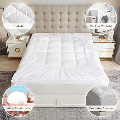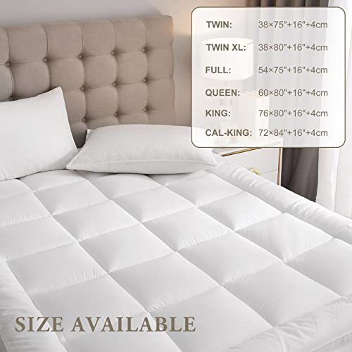 Yarnsoft Full Size Extra Thick MattressTopper Hemline Deep Elastic Pockets16-21Inch,All Season Cooling & Breathable Mattress Pad Cover, Pillowtop Mattress Toppers Mattress Protector54 x75 White