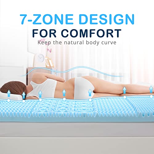 YUGYVOB Full Size Mattress Topper, Cooling Gel Infused Mattress Topper,7 Zone Egg Crate Foam, CertiPUR-US Certified, 2-Inch (54 * 75 Inch)