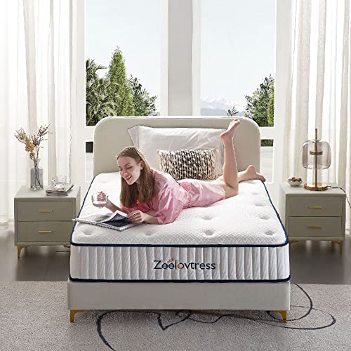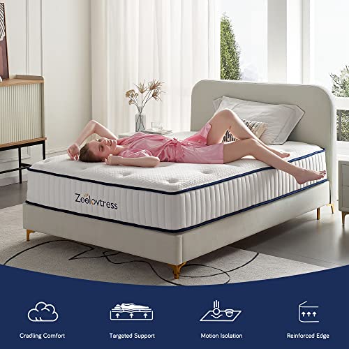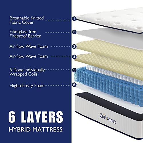 Zeelovtress Full Mattress, 10 Inch Comfort Top Box Spring Hybrid Bed Mattress, 3-Zone Targeted Support Back Pain Relief CertiPUR-US Airflow Egg Foam Medium Firm 120 Nights Trial, Full Size (54″*75″)