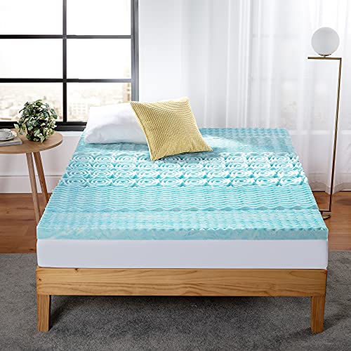 Zinus 2 Inch Green Tea Cooling Gel Memory Foam Zoned Support Mattress Topper, King, Blue