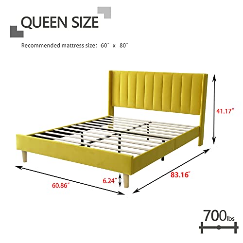 Zoophyter Upholstered Platform Bed Frame Queen Size with Headboard,Mattress Foundation/Strong Wooden Slats Support/No Box Spring Needed/Easy Assembly Yellow